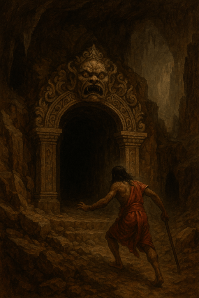 A natural stone archway, sculpted not by man but nature itself. It resembled a giant face, with eyes, nose, and lips. Some said it was Mahadev himself, watching.